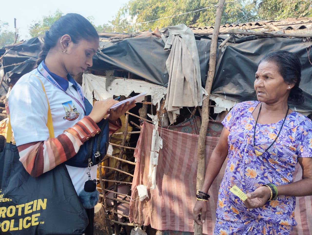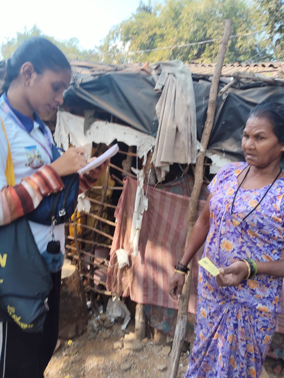 Day 4 - NSS volunteers conducted socio-economic survey of 6 padas to identify genuine beneficiaries to distribute Annaj Dan Coupons. NSS volunteers were successful in identifying 100 households from these padas.